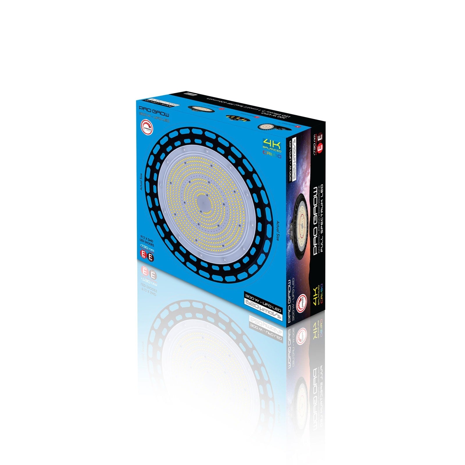 Pro Grow UFO LED’s are available in 100 W, 200 W, 300 W & 500 W configurations with outputs of PPF 250, 500, 750 & 1250 respectively. Total weight for all units are well under 3.5 kg making installation and mounting a breeze.