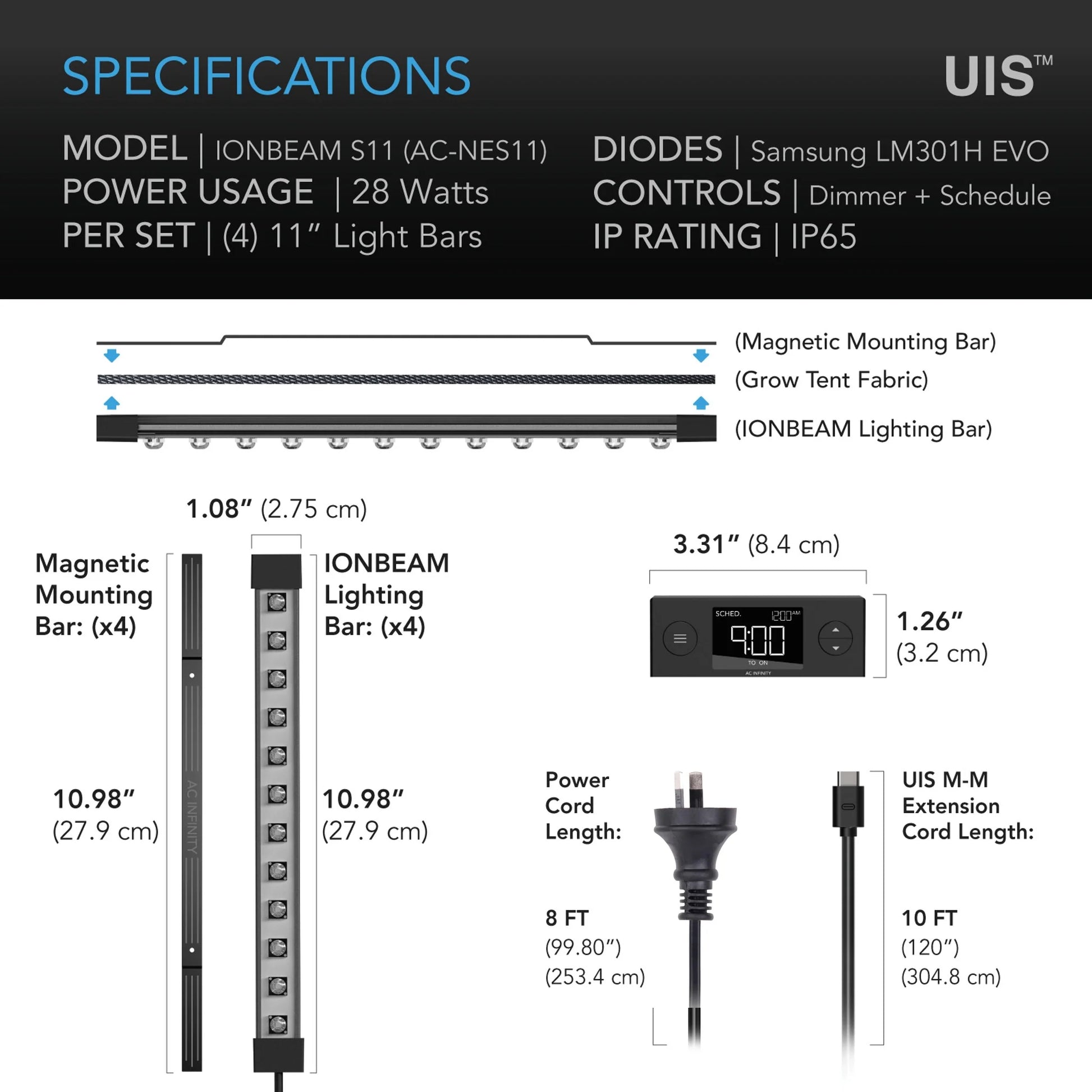 AC Infinity - Ionbeam S11, Full spectrum LED grow light bars, Samsung LM301H EVO 11 inch length / 28 cm