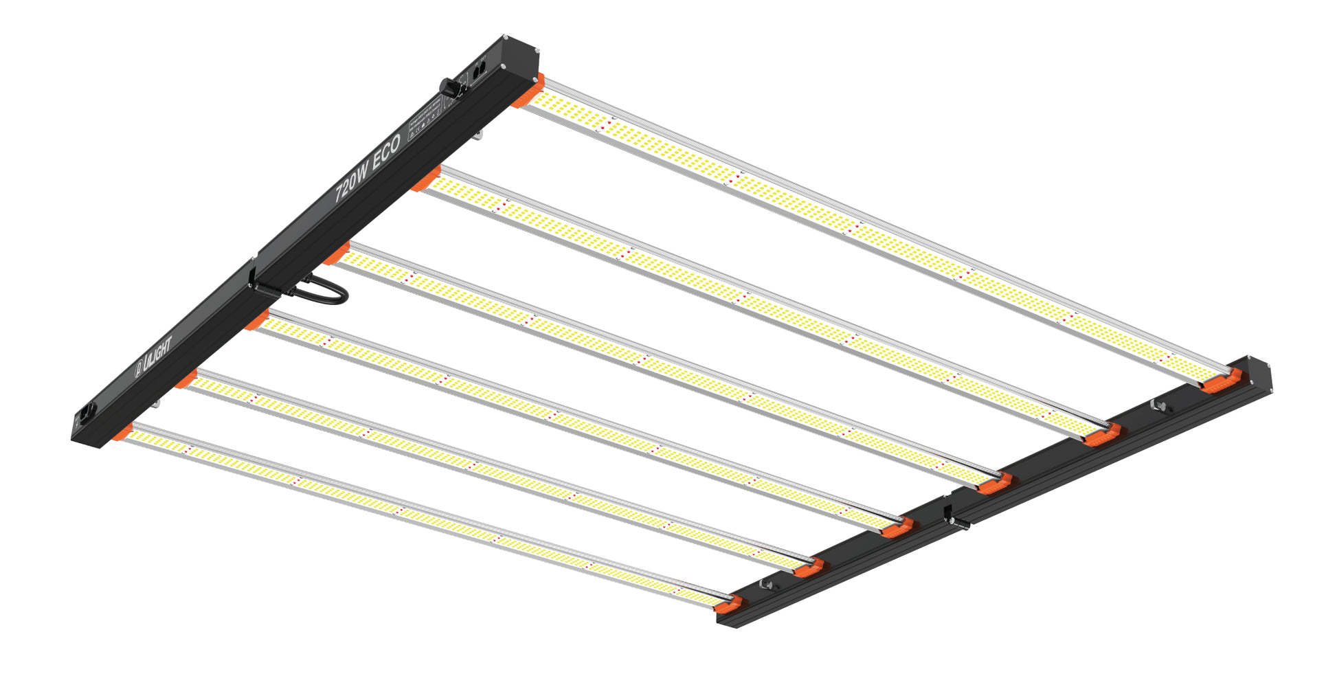 Equipped with 2,016 Samsung diodes, the ULight ECO 720W emits a 3900K full-spectrum output ideal for both vegetative and flowering stages, while its 180° beam angle ensures even canopy coverage without hot spots. The system features both 0–10V dimming and manual stepped dimming (20%, 40%, 60%, 80%, 100%) for complete light intensity control.